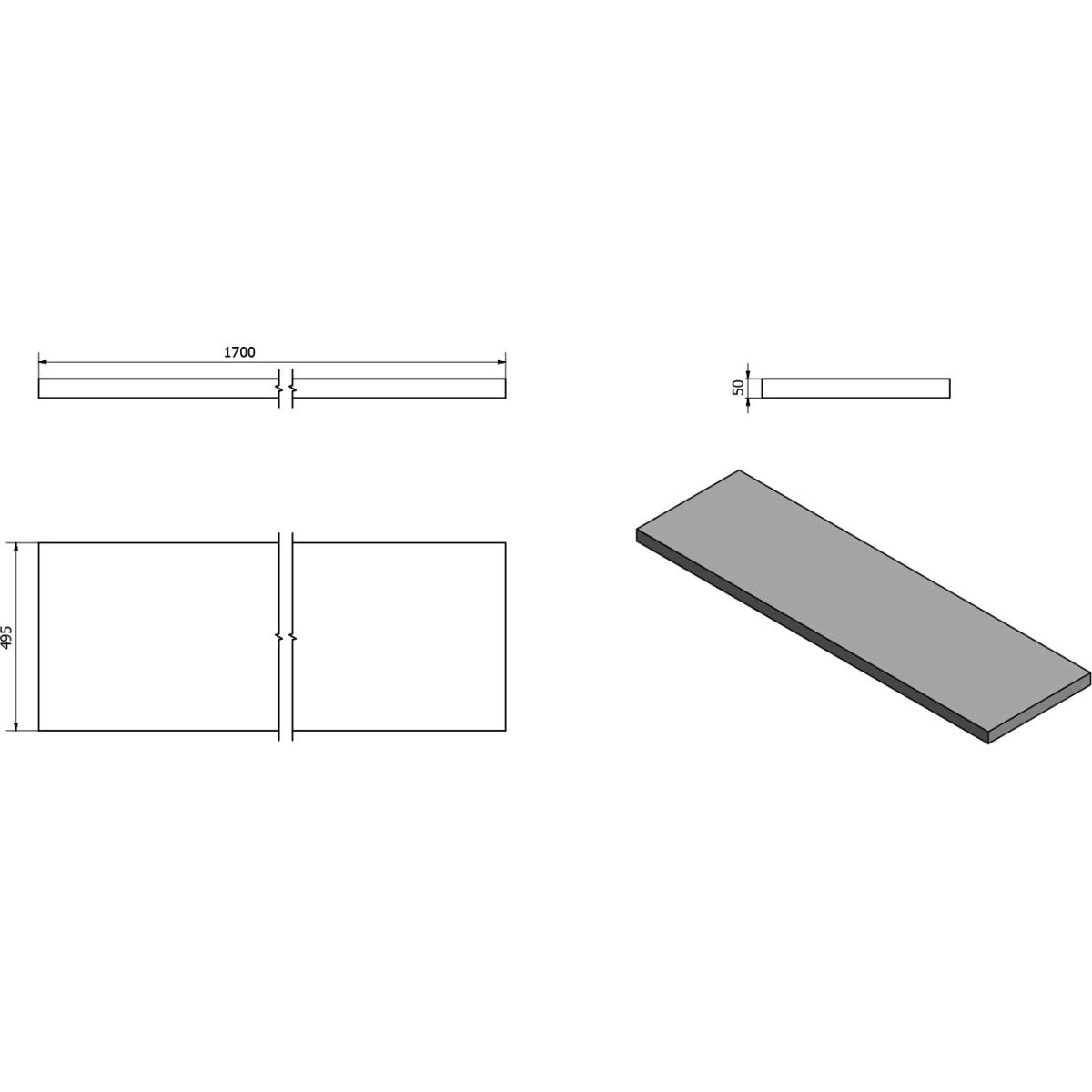 Sapho Avice Arbeitsplatte 170x49.5 cm graphit-blau AV176