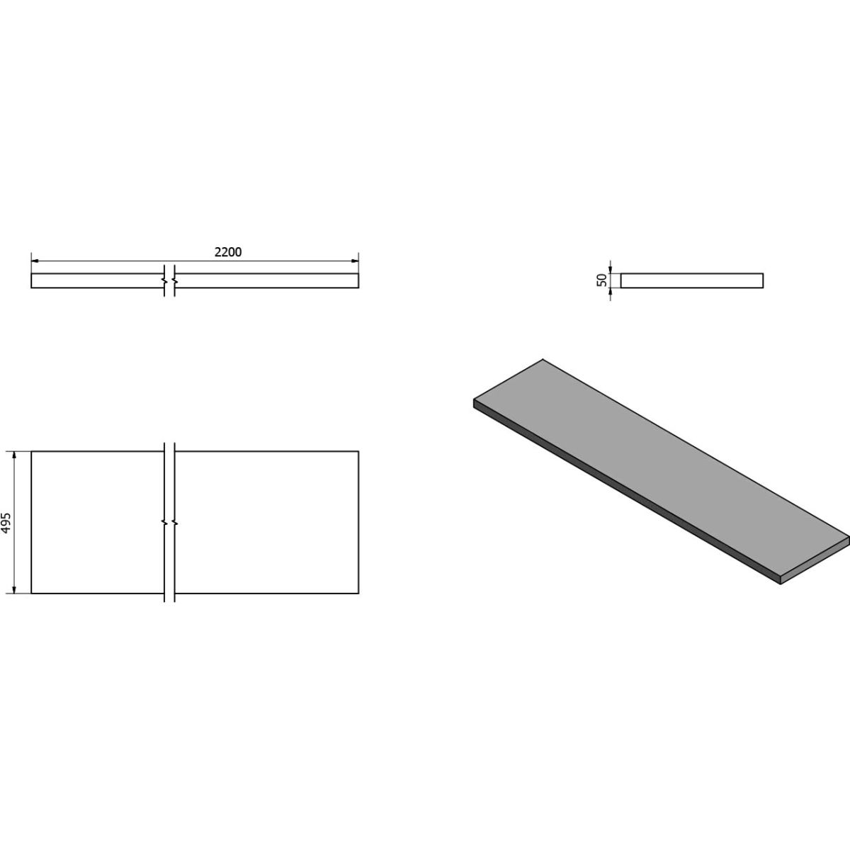 Sapho Avice Arbeitsplatte 220x49.5 cm eiche AV224
