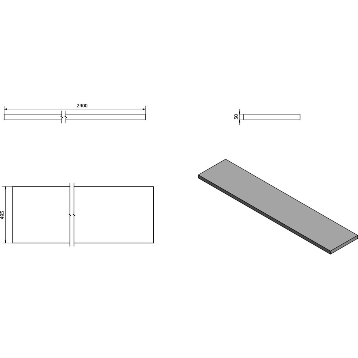 Sapho Avice Arbeitsplatte 240x49.5 cm graphit AV249
