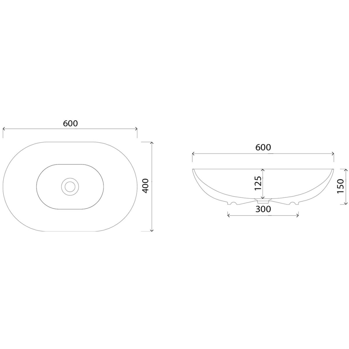 Sapho Balisong Waschbecken 60x40 cm oval Aufsatzwaschbecken weiß WH080