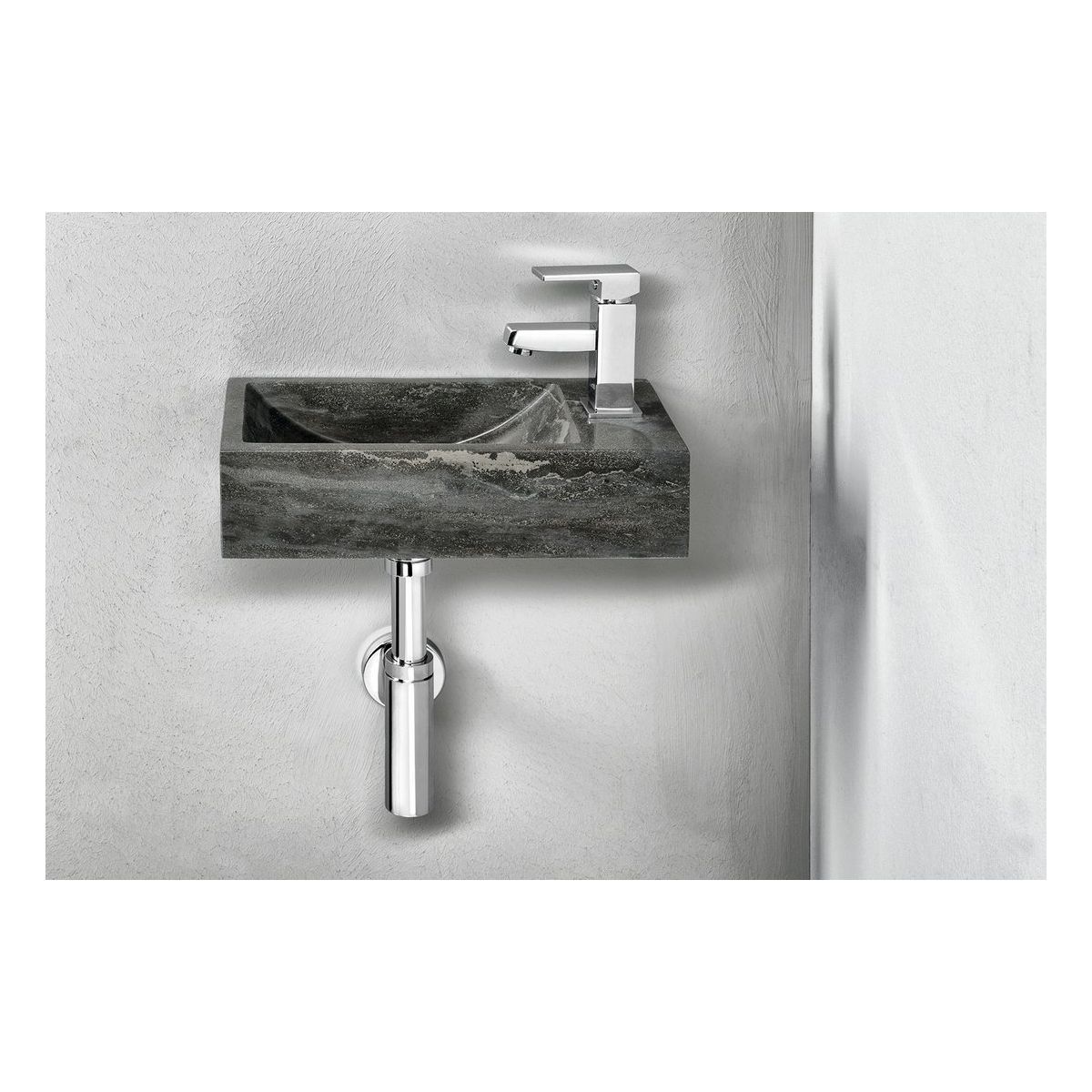 Die Textur der Steinwaschbecken ist bei jedem Element einzigartig.