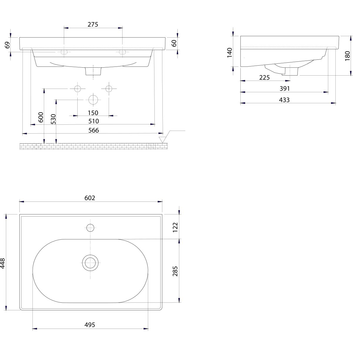 Sapho Brand Waschbecken 60.2x44.8 cm rechteckig Klassisch weiß TU0428