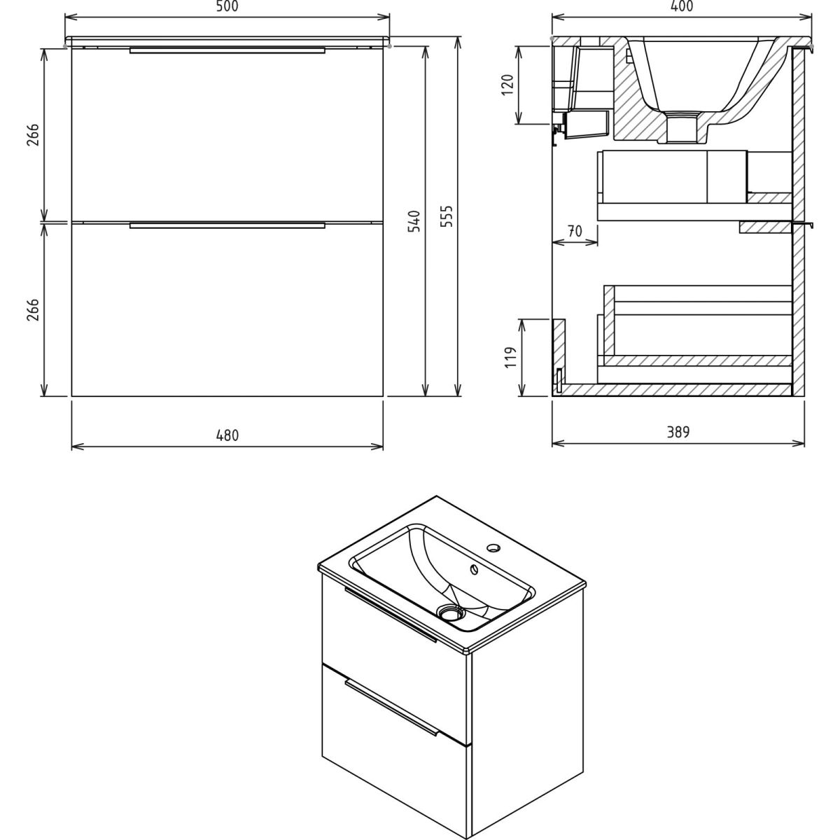Sapho Carisma Dekorativer Tisch 48x38.9x54 cm Unterschrank hängend weiß CR492-3030