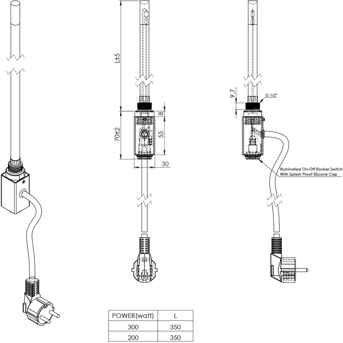 - Länge des Heizelements: 35 cm