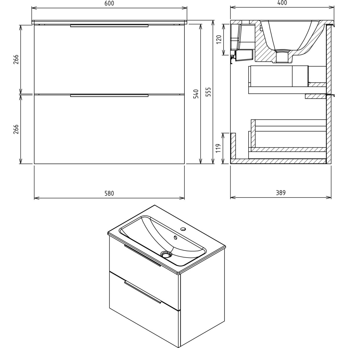 Sapho Cirasa Kabinett 58x38.9x54 cm Unterschrank hängend weiß CR592-3030