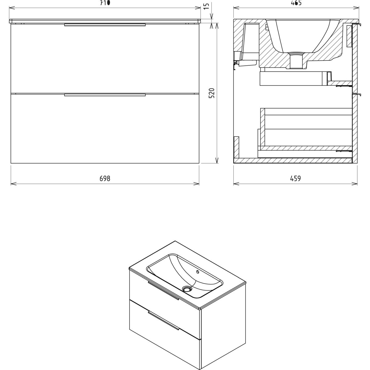 Sapho Cirasa Kabinett 69.8x45.9x52 cm Unterschrank hängend weiß CR701-3030