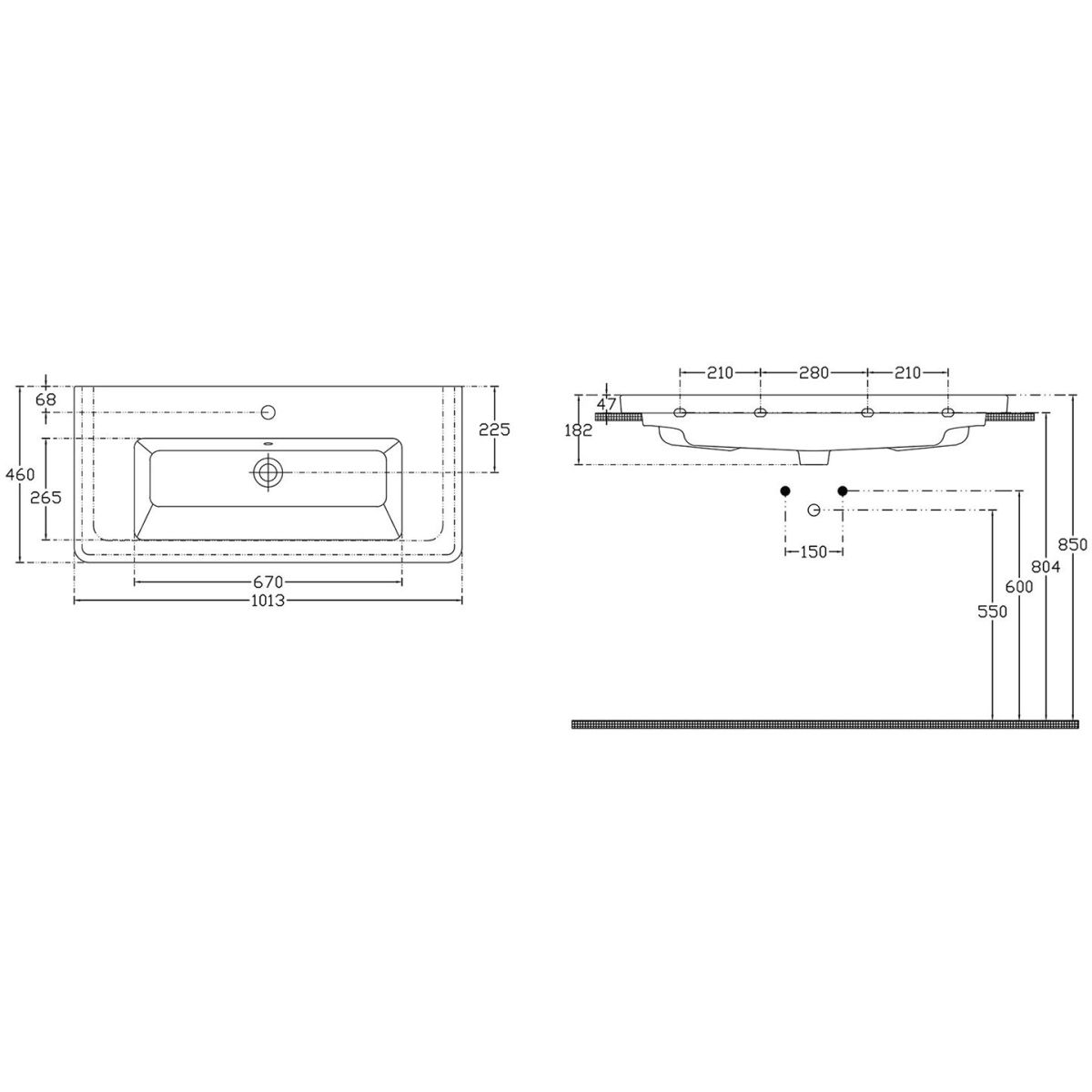 Sapho City Waschbecken 101.3x46 cm rechteckig Klassisch-Möbel weiß KE100