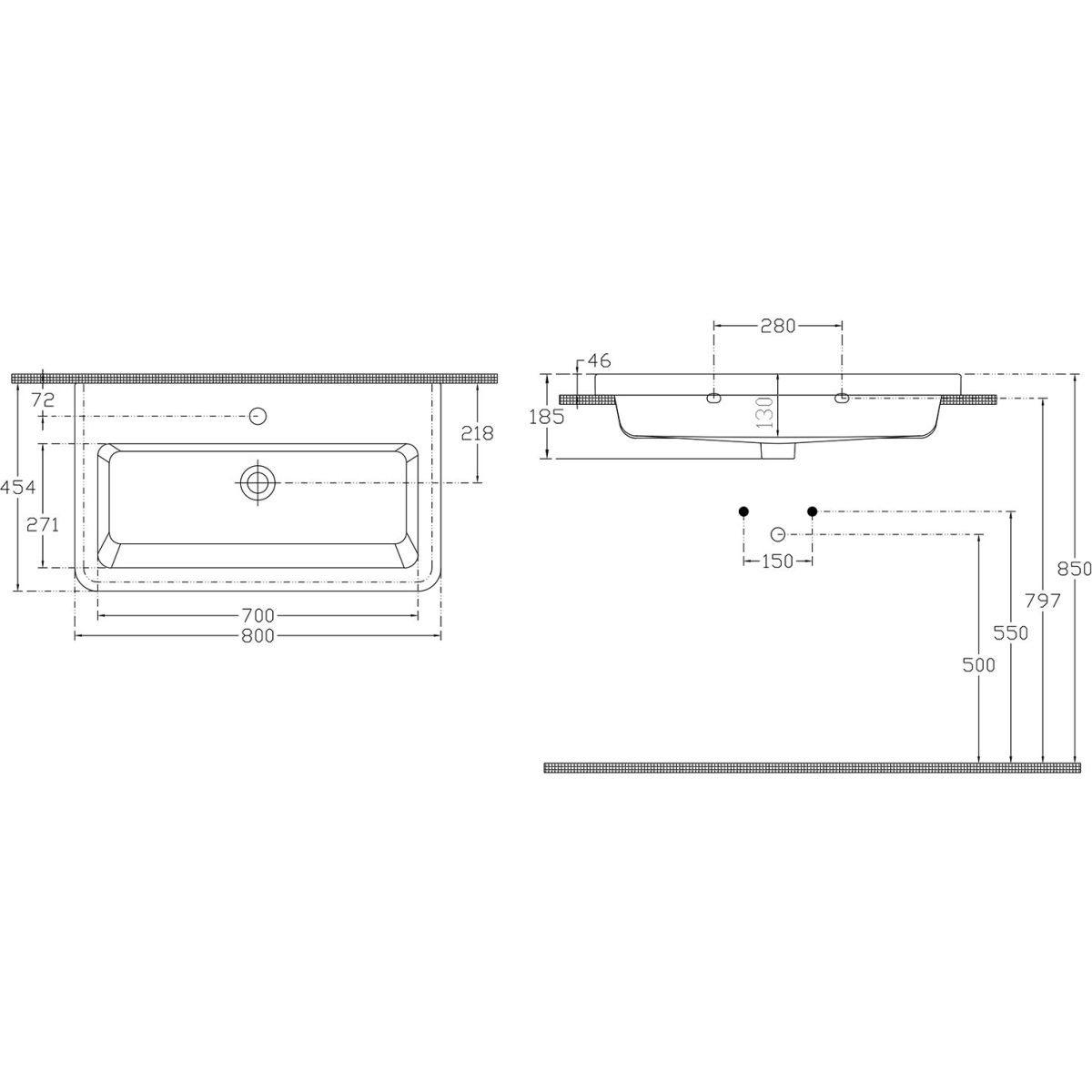 Sapho City Waschbecken 80x45.4 cm rechteckig Klassisch-Möbel-Einbauwaschbecken weiß KE080