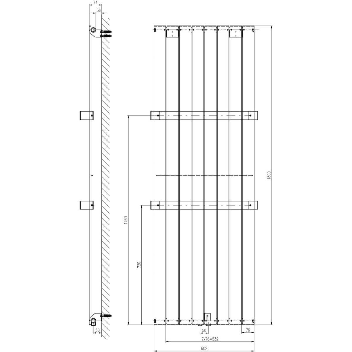 - Auf dem Heizkörper können 1 oder 2 Handtuchhalter (separat erhältlich) angebracht werden