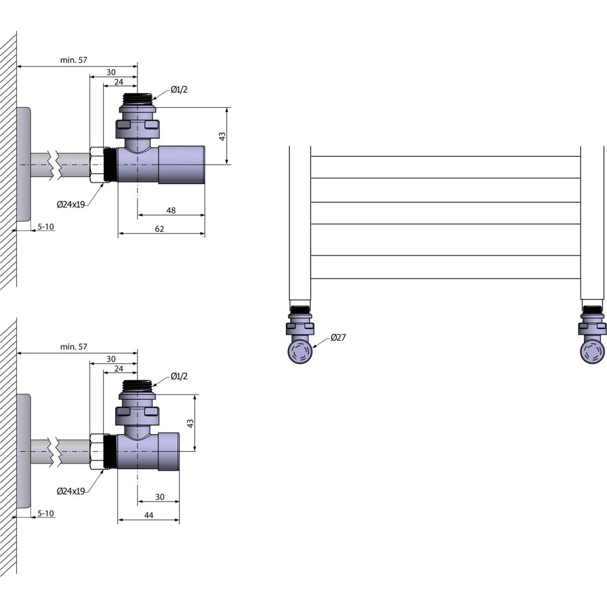 - Das Set enthält Anschlüsse für Cu (Ø15 mm) und Alupex (Ø16x2 mm), es müssen keine weiteren Zubehörteile gekauft werden, um den Heizkörper anzuschließen