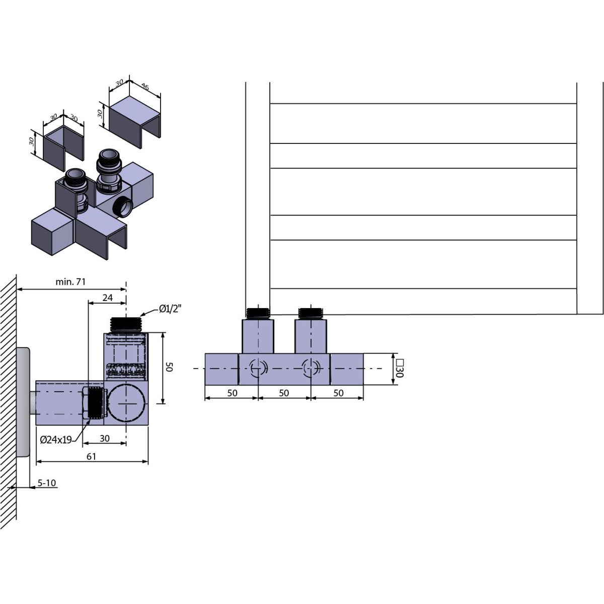 - Das Set enthält Anschlüsse für Cu (Ø 15 mm) und Alupex (Ø 16 x 2 mm), sodass keine weiteren Zubehörteile zum Anschluss des Heizkörpers gekauft werden müssen