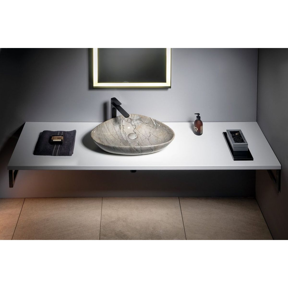 Sapho Dalma Waschbecken 58.5x39 cm oval Aufsatzwaschbecken grauer Stein MM213