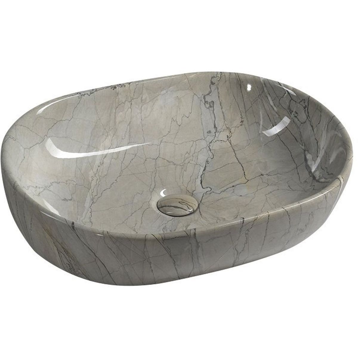 Sapho Dalma Waschbecken 59x42 cm oval Aufsatzwaschbecken grauer Stein MM413