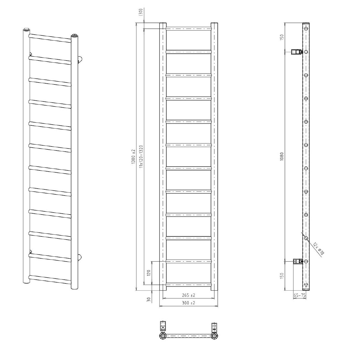 Sapho Dina Badezimmerheizkörper Leiter 138x30 cm schwarz IR373B
