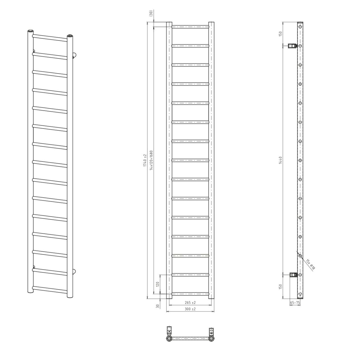 Sapho Dina Badezimmerheizkörper Leiter 174x30 cm schwarz IR376B
