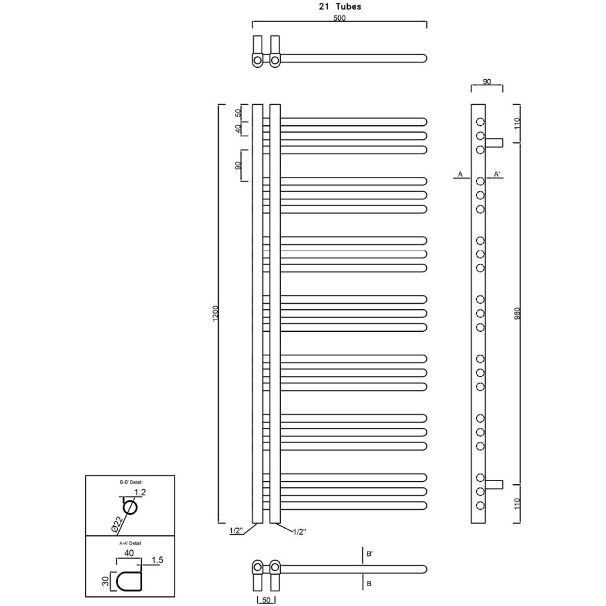 Sapho Dorlion Badezimmerheizkörper dekorativ 120x50 cm chrom 1130-11