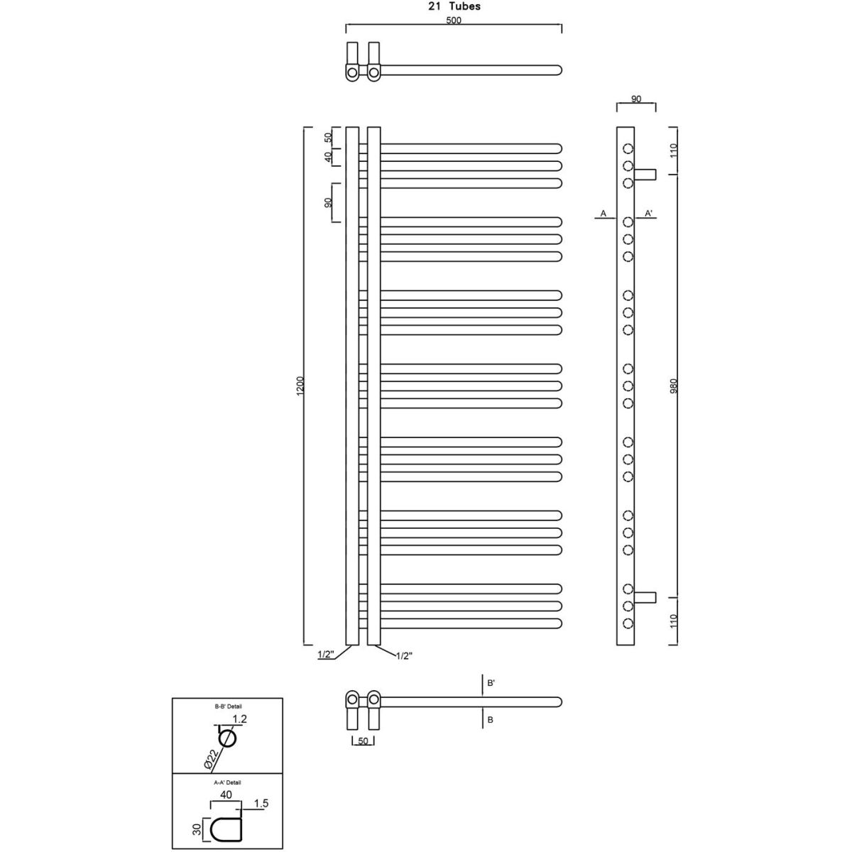 Sapho Dorlion Badezimmerheizkörper dekorativ 120x50 cm schwarz 1130-21