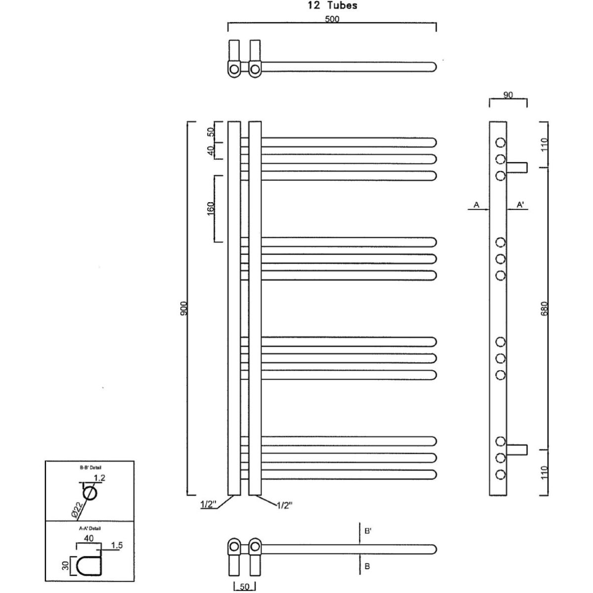 - Wenn der Heizkörper ausschließlich elektrisch, d. h. mit einem Heizelement, beheizt wird, muss zusätzlich eine ½"-Blende für den Heizkörper erworben werden (empfohlen wird, den Heizkörper mit destilliertem Wasser zu befüllen).