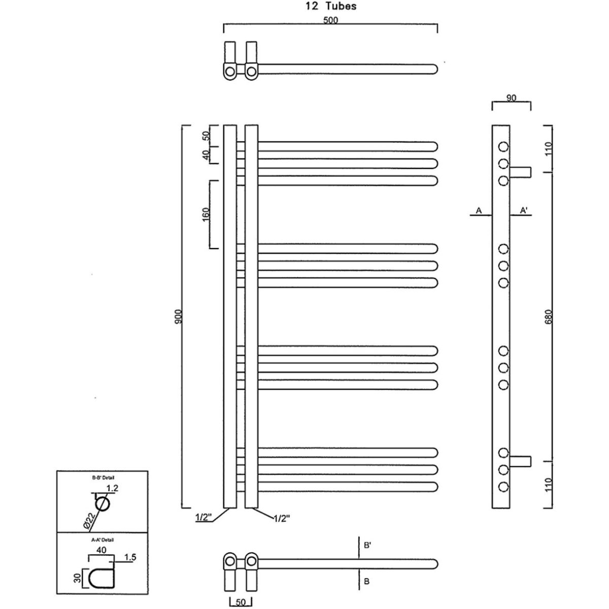 Sapho Dorlion Badezimmerheizkörper dekorativ 90x50 cm weiß 1130-50