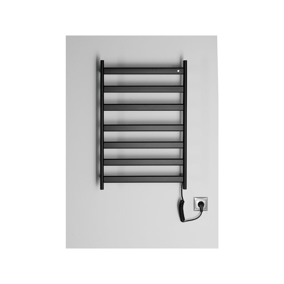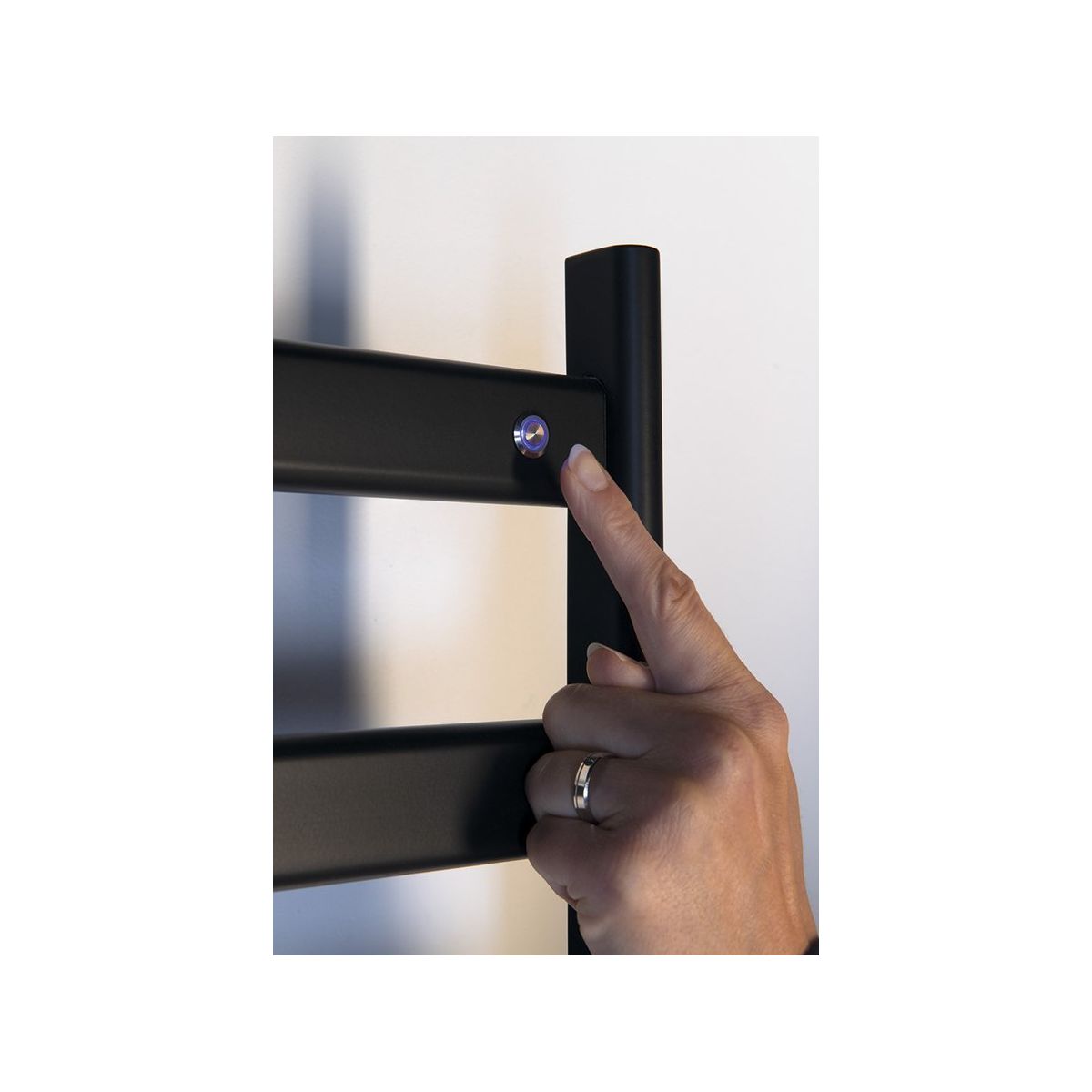 Die elektrischen Trockner aus lackiertem Edelstahl ELIAS dienen zum Erwärmen und Trocknen von Handtüchern und werden besonders in der Wintersaison geschätzt. Das Innere des Heizkörpers besteht aus Kohlefaser (es muss keine Flüssigkeit eingefüllt werden), was für eine hervorragende Wärmeleitfähigkeit sorgt. Der beleuchtete Schalter ist in der oberen rechten Ecke integriert.