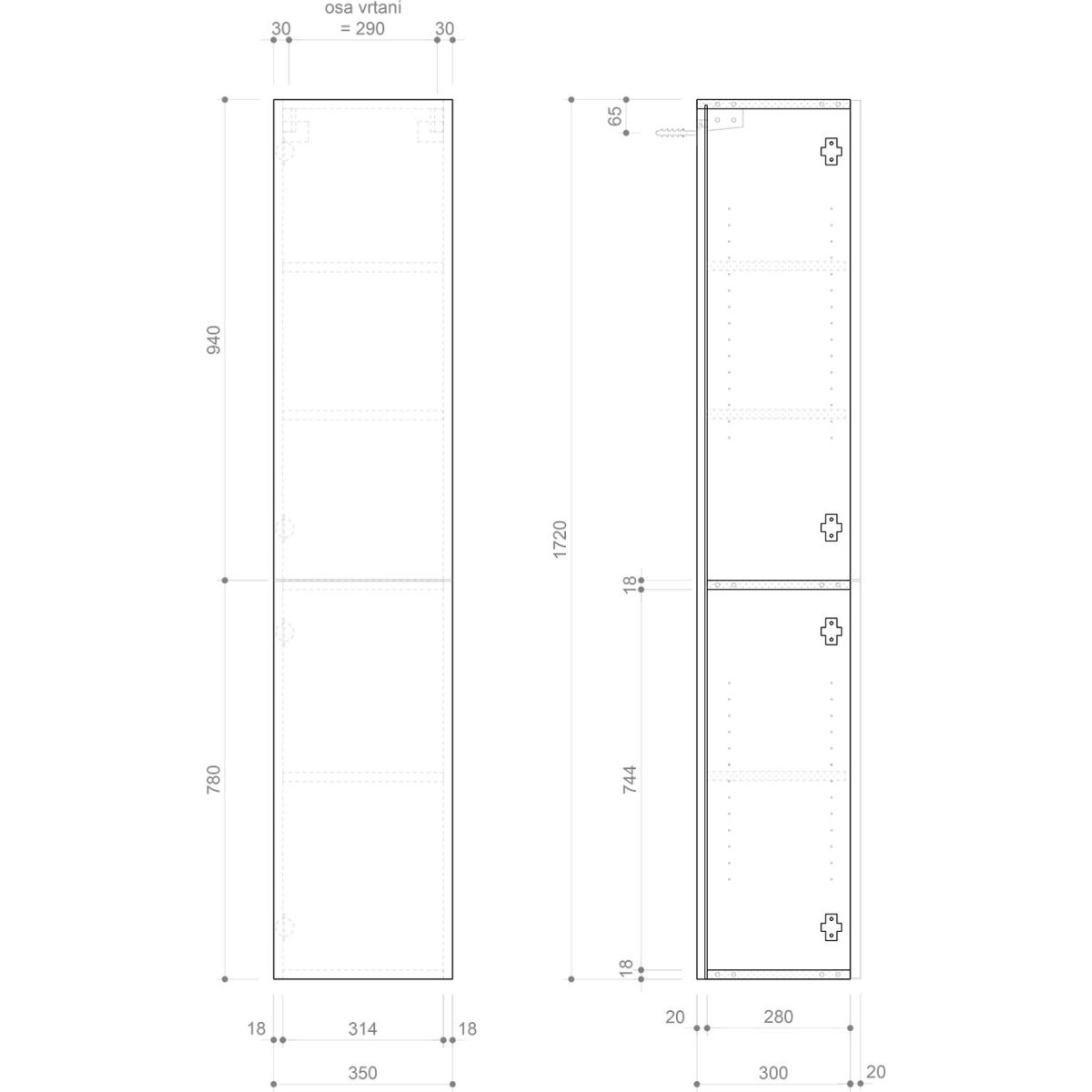 Sapho Espace Kabinett 35x32x172 cm Seitenschrank hängend eiche ESC230-2222