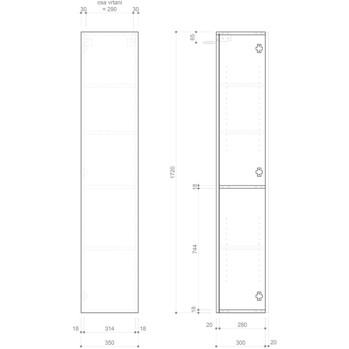 Sapho Espace Kabinett 35x32x172 cm Seitenschrank hängend weiß ESC330-3030