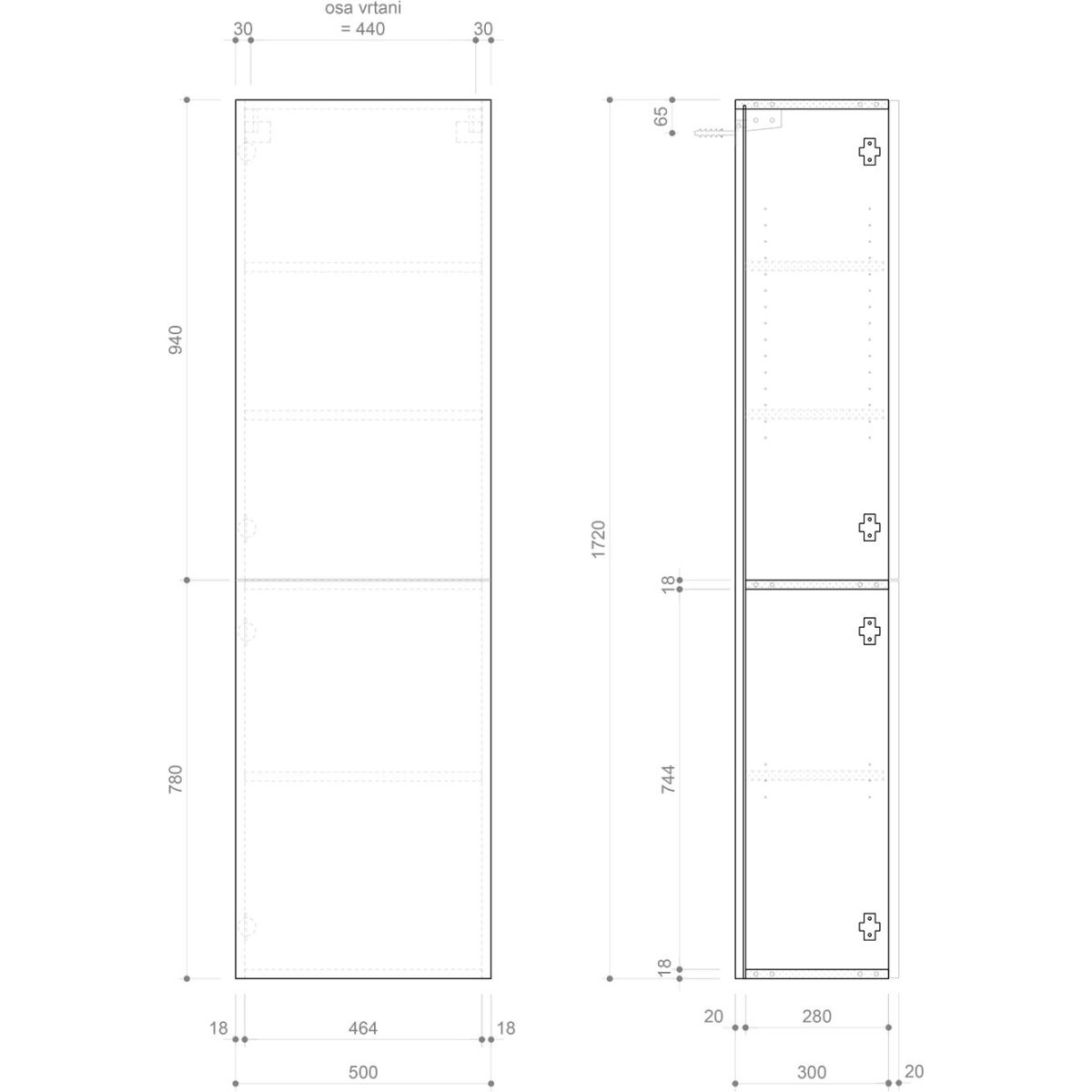 Sapho Espace Kabinett 50x32x172 cm Seitenschrank hängend holz ESC450-1616