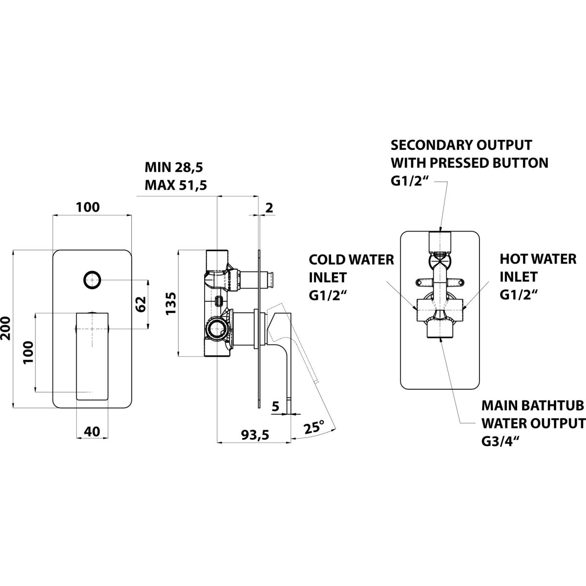 Sapho Forata badewannen- und duscharmatur Unterputz chrom FT042