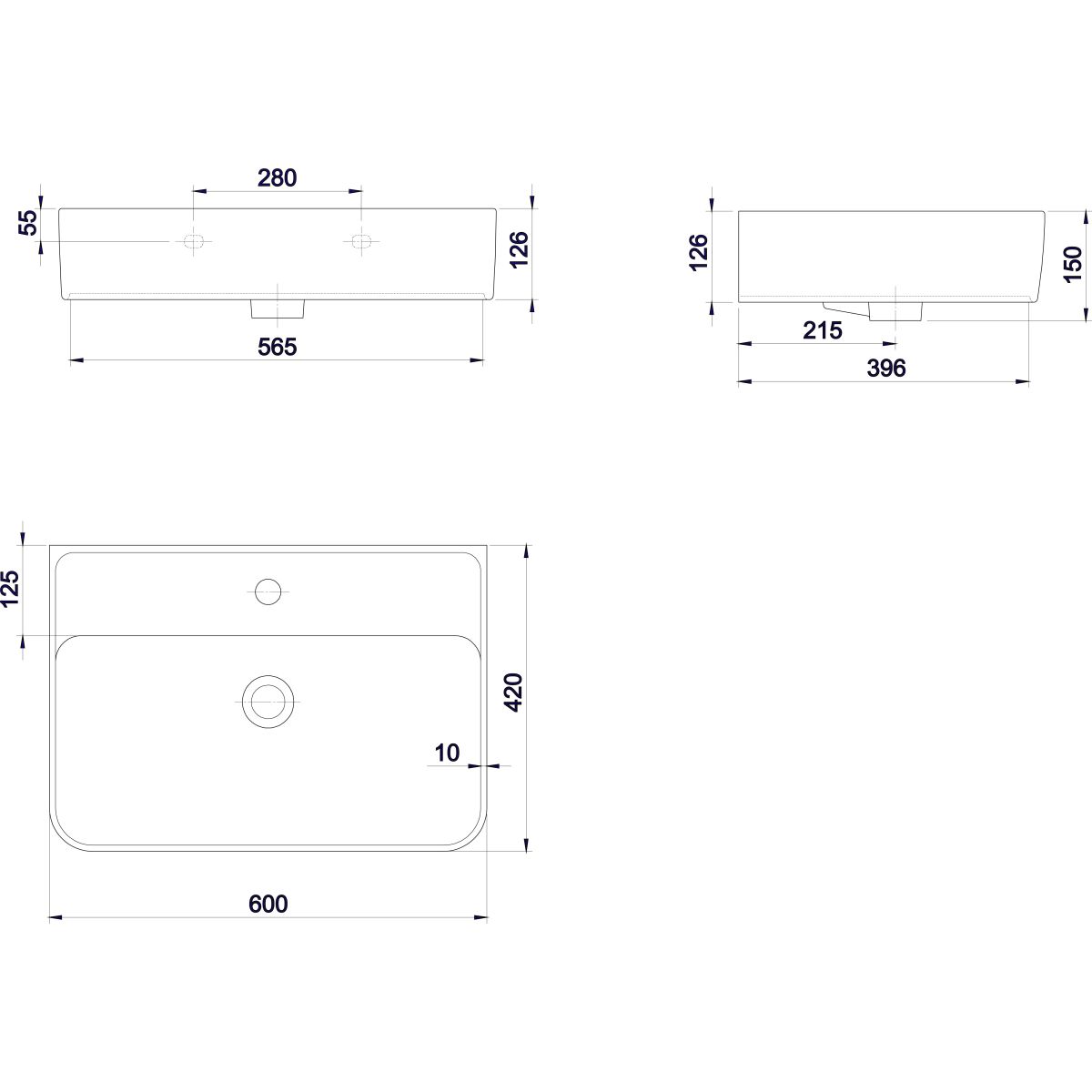 Sapho Gali Waschbecken 60x42 cm rechteckig Klassisch weiß TU0177