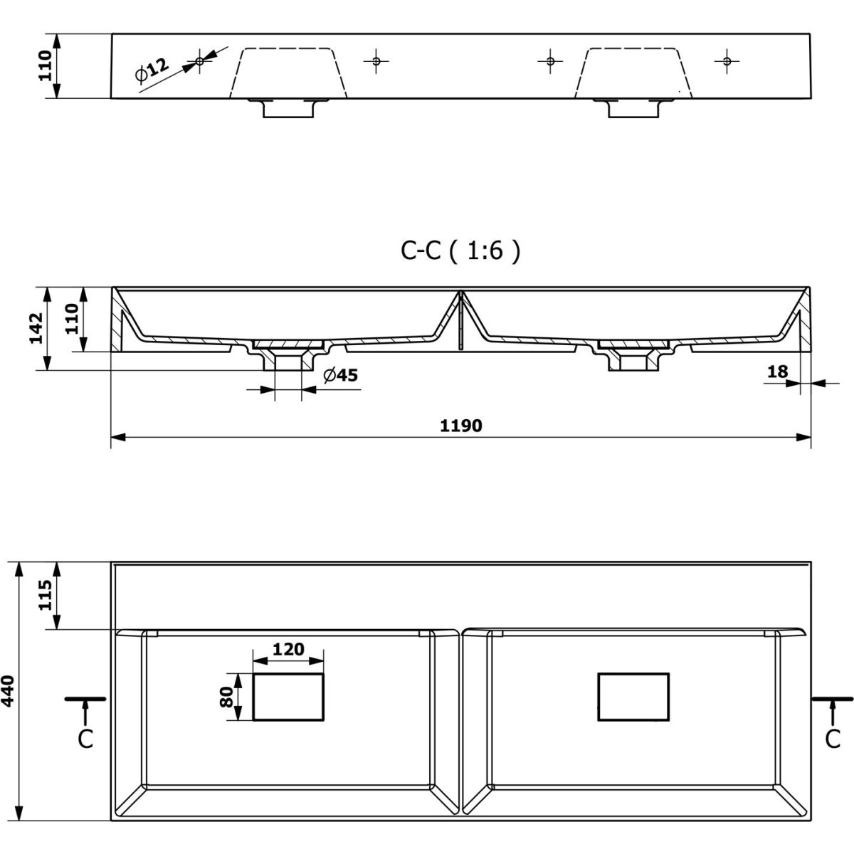 Sapho Godiva Waschbecken 119x44 cm rechteckig Klassisch-Möbel-Doppelt weiß GU119-0