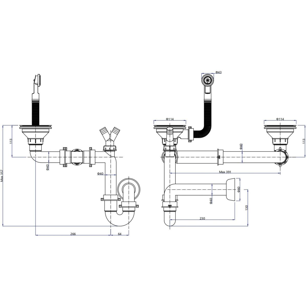 - Ausstattung: Siphon mit Anschluss für Waschmaschine/Geschirrspüler, Schablone zum Ausschneiden der Öffnung in der Arbeitsplatte