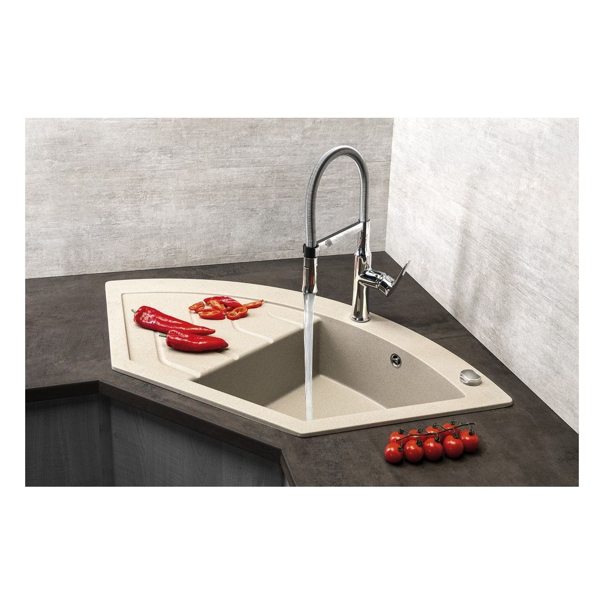 - Ausstattung: Siphon mit Anschluss für Waschmaschine/Geschirrspüler, Schablone zum Ausschneiden der Öffnung in der Arbeitsplatte