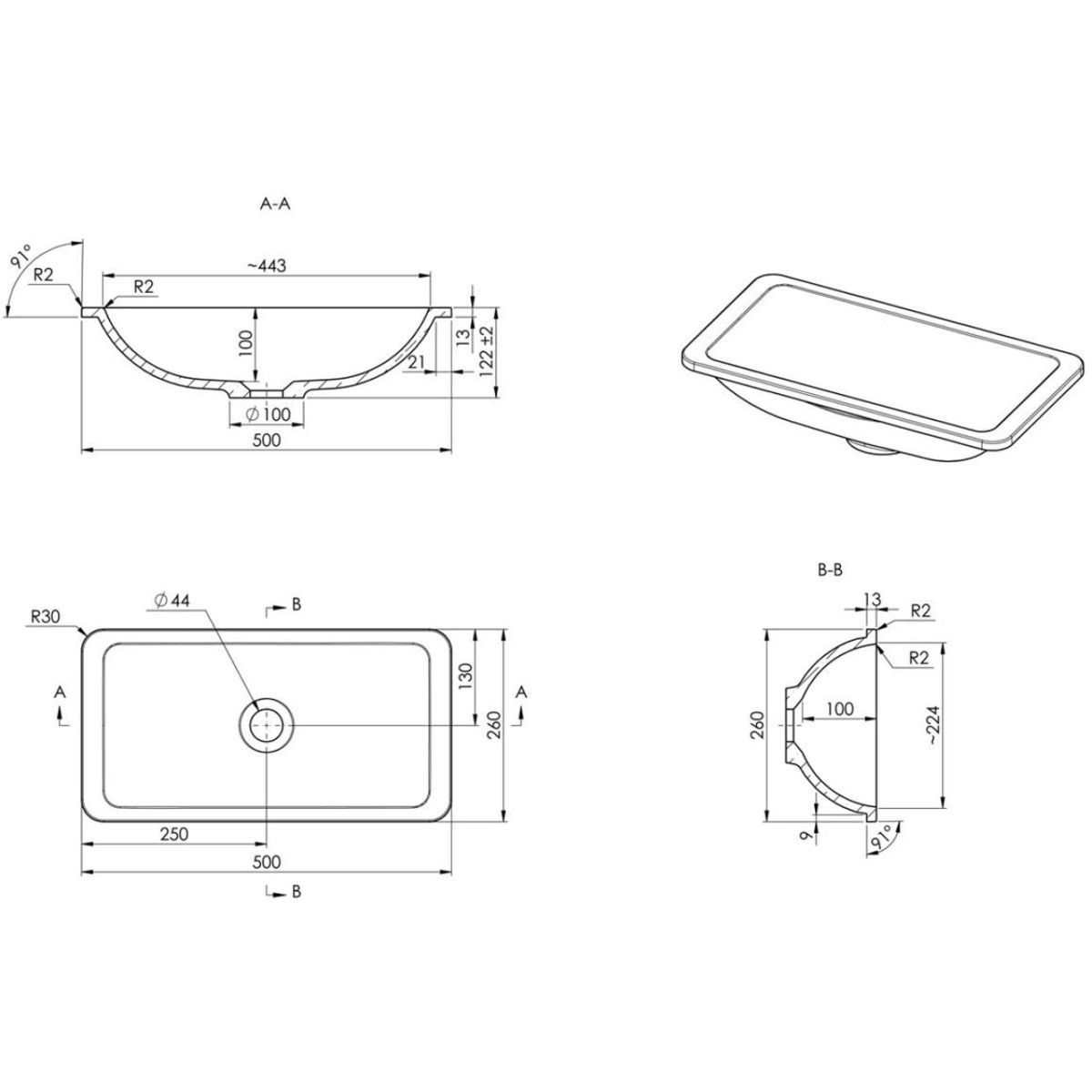 - Typ: Einbauwaschbecken, Unterbauwaschbecken