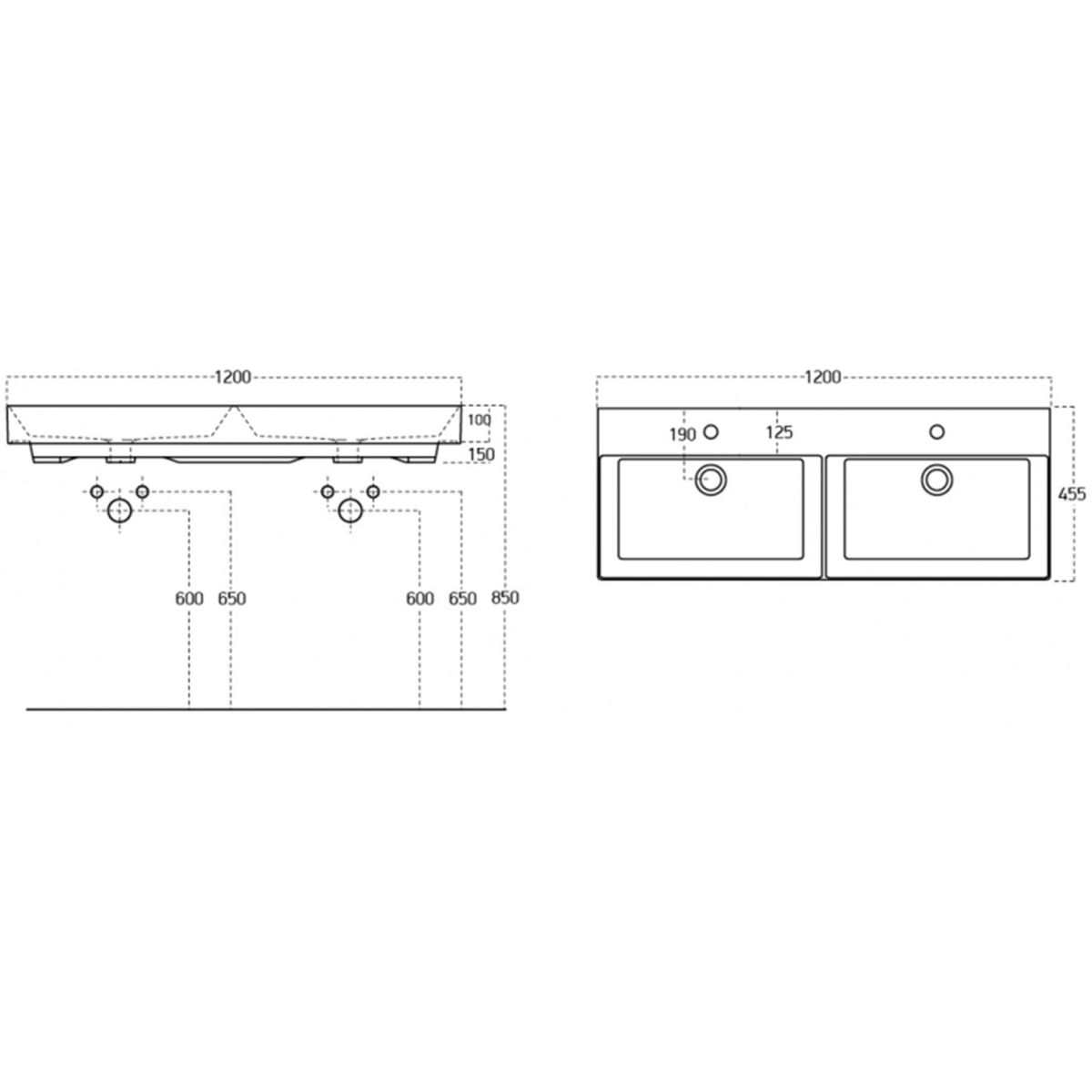 Sapho Kare Waschbecken 120x45.5 cm rechteckig Klassisch-Möbel weiß 17120