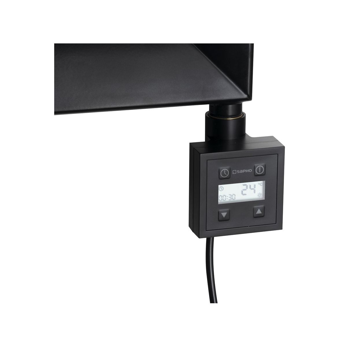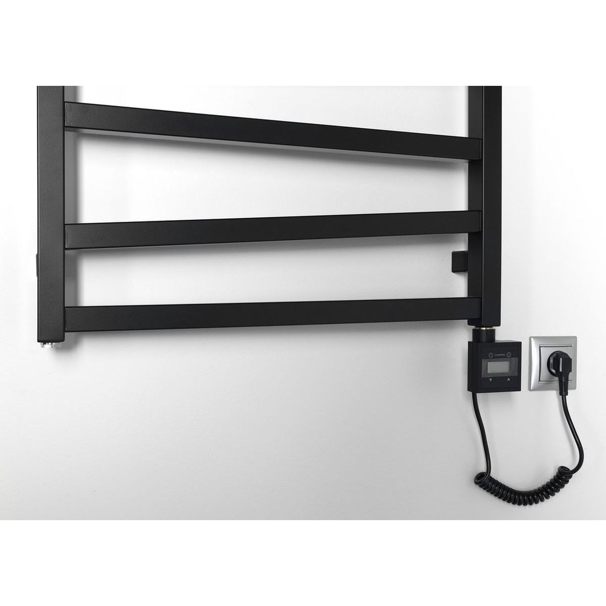 KTX BLACK – elektrischer Heizkörper mit Thermostat, LCD-Display und Folientastatur. Quadratische Bauweise, geeignet für alle Heizkörpertypen. Die symmetrische Bauweise ermöglicht die Montage auf der linken und rechten Seite des Heizkörpers.