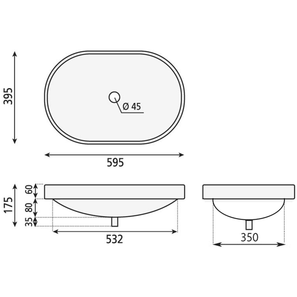 Sapho Lima Waschbecken 59.5x39.5 cm oval Einbauwaschbecken weiß BH7022