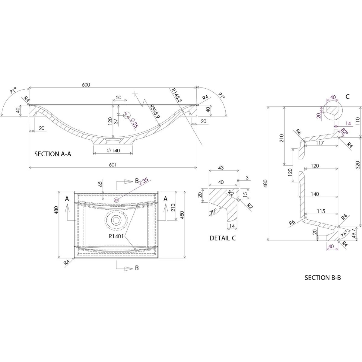 Sapho Luciola Waschbecken 60x48 cm rechteckig Möbel weiß 50062