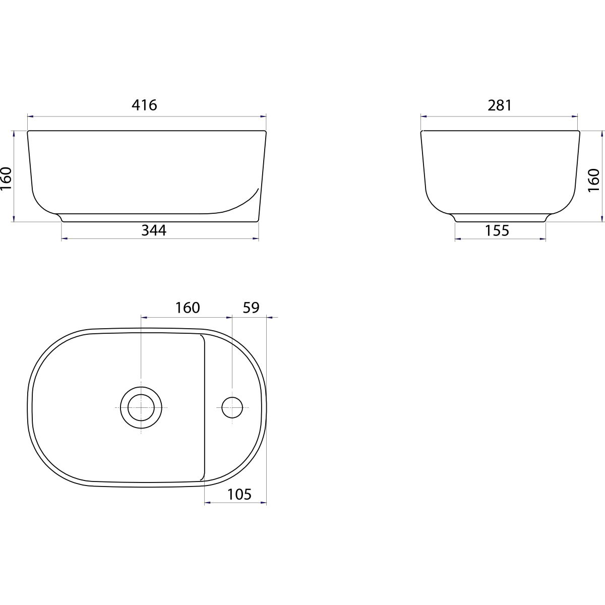 Sapho Manaki Waschbecken 42x28 cm oval Aufsatzwaschbecken weiß TU0076