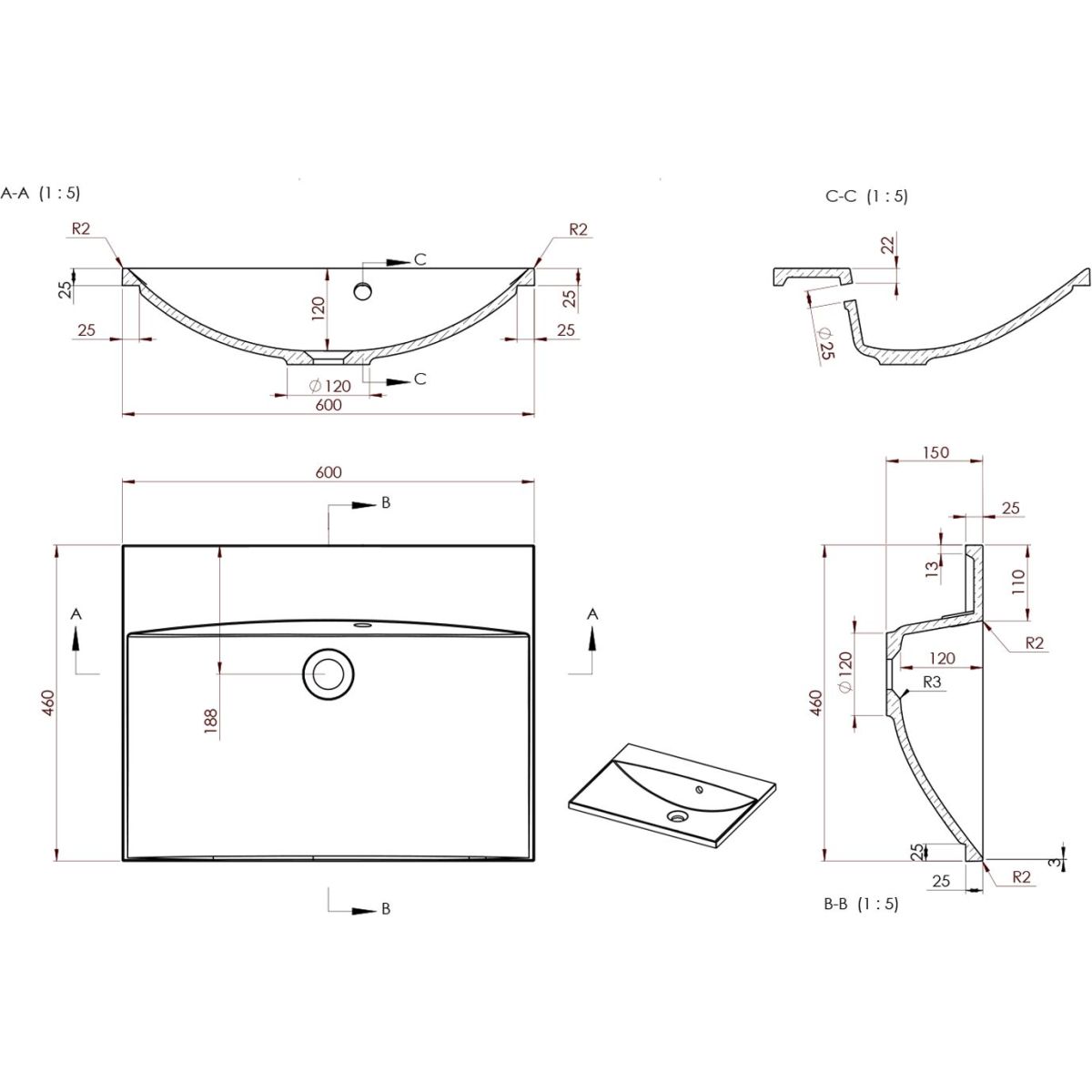 - Material: mineralwerkstoff