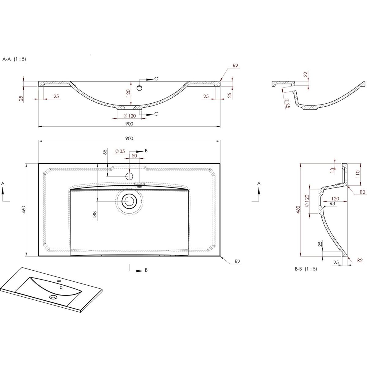 - Material: mineralwerkstoff