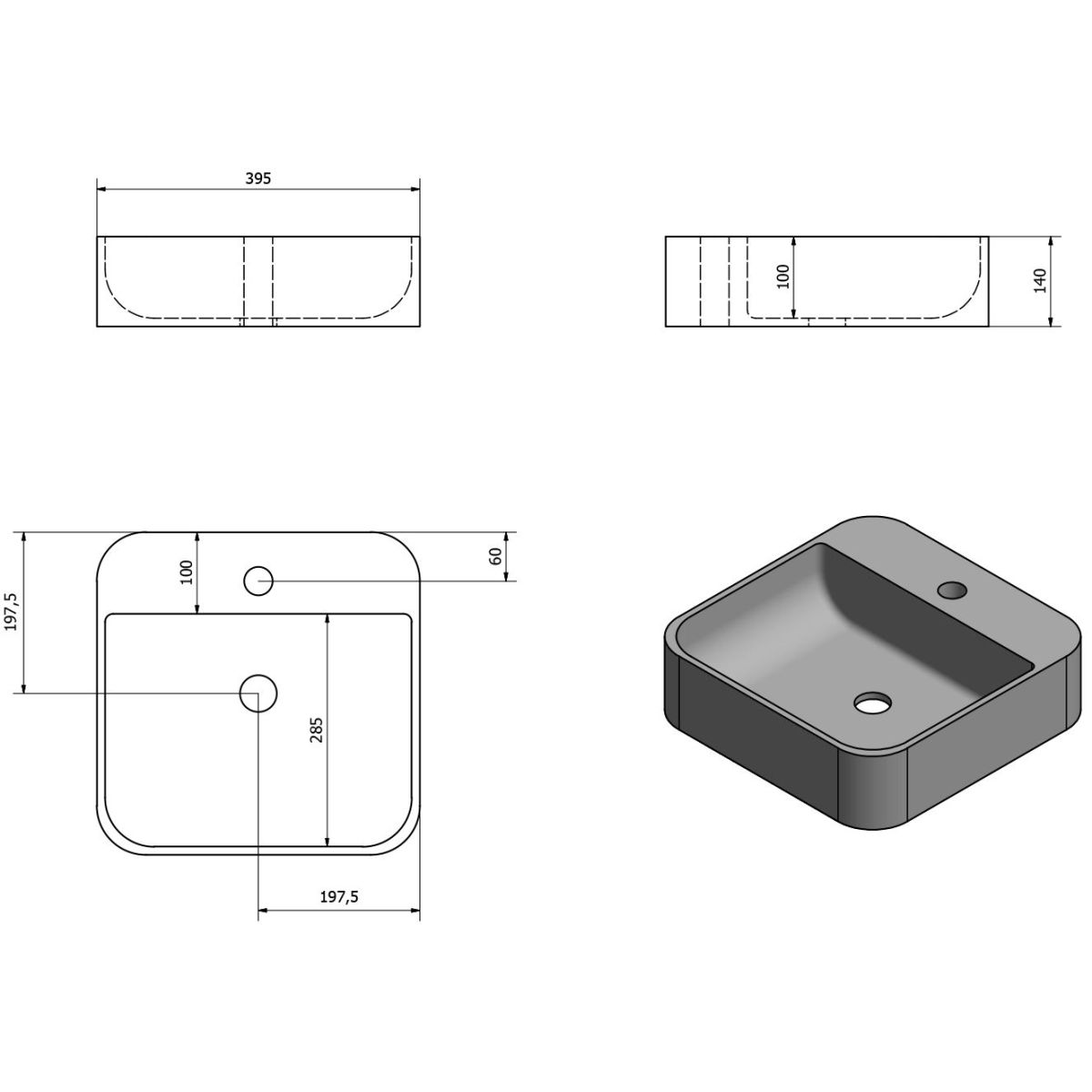 Sapho Molveno Waschbecken 39.5x39.5 cm quadratisch Aufsatzwaschbecken weiß AR453