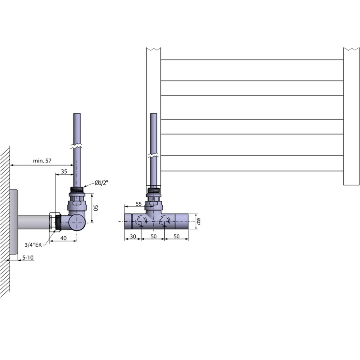 - im Set enthalten sind Verbindungsstücke für Cu (Ø15 mm) und Alupex (Ø16x2 mm), es müssen keine weiteren Zubehörteile gekauft werden, um den Heizkörper anzuschließen