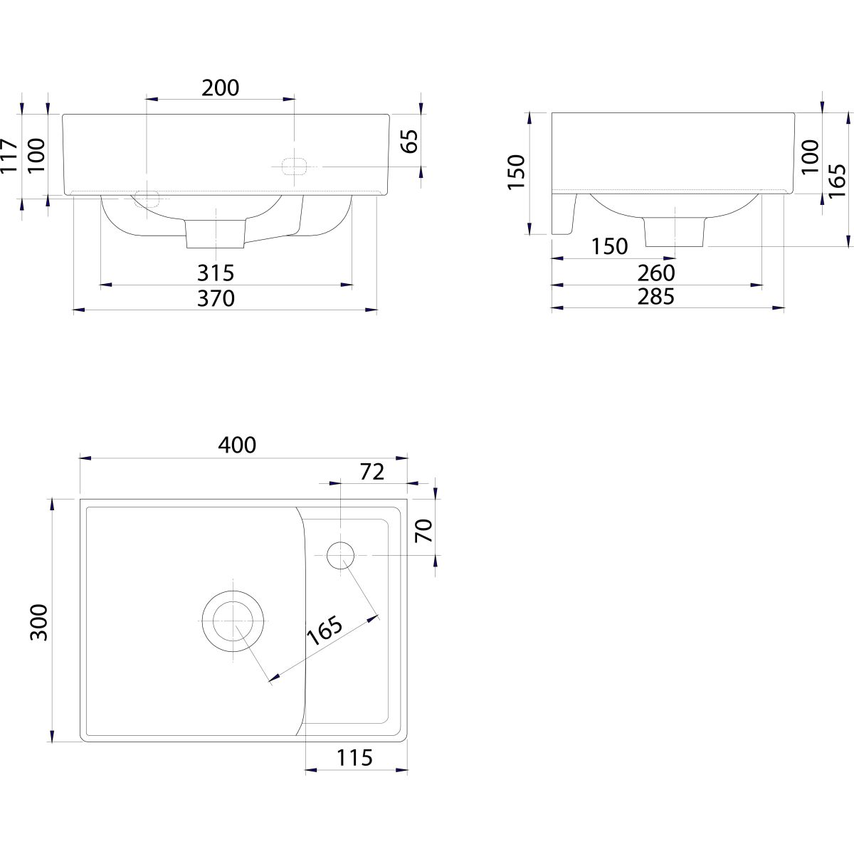 Sapho Nuali Waschbecken 40x30 cm rechteckig Klassisch weiß TU0128