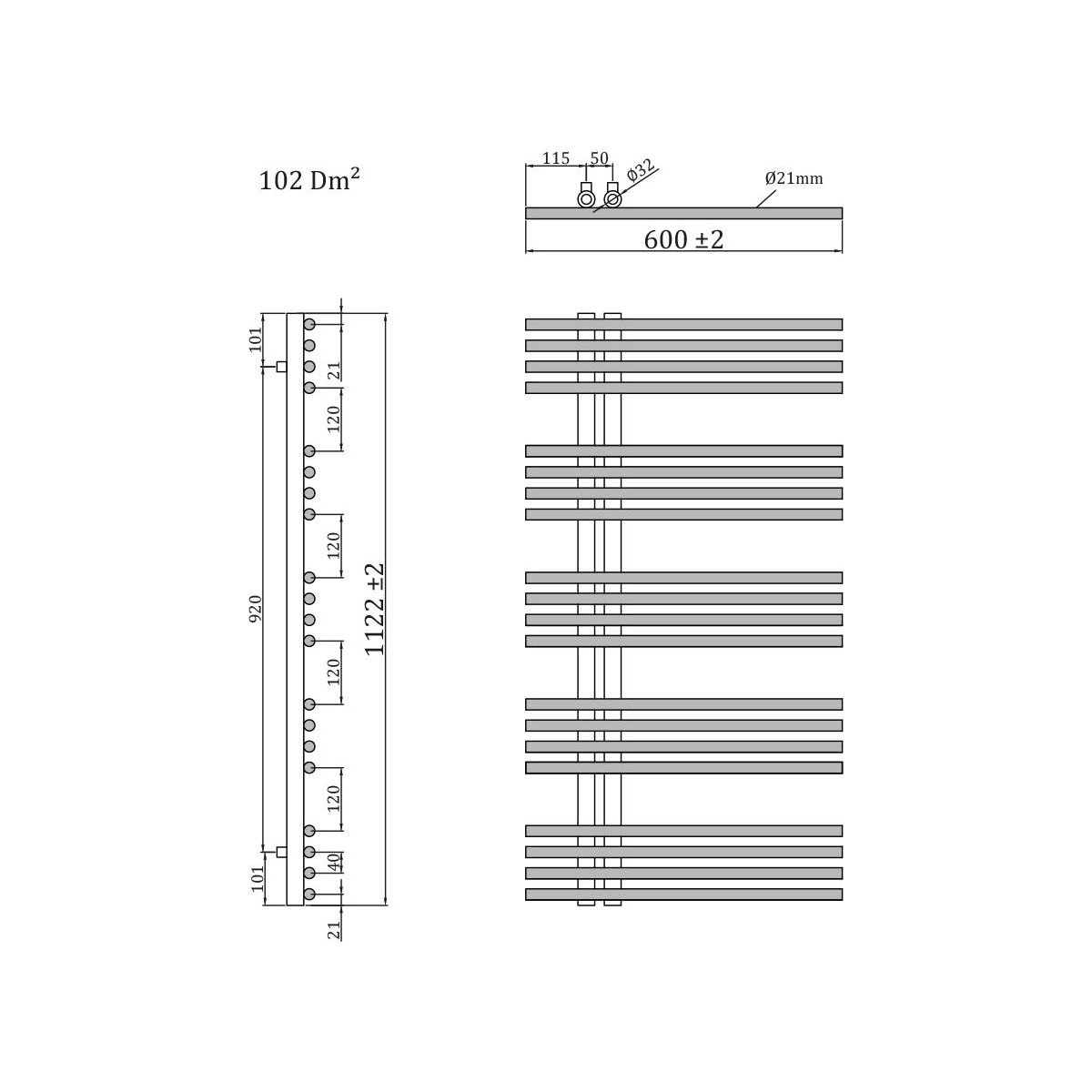 - Möglichkeit der Verwendung eines manuellen Ventils oder eines Ventils mit Thermostatkopf