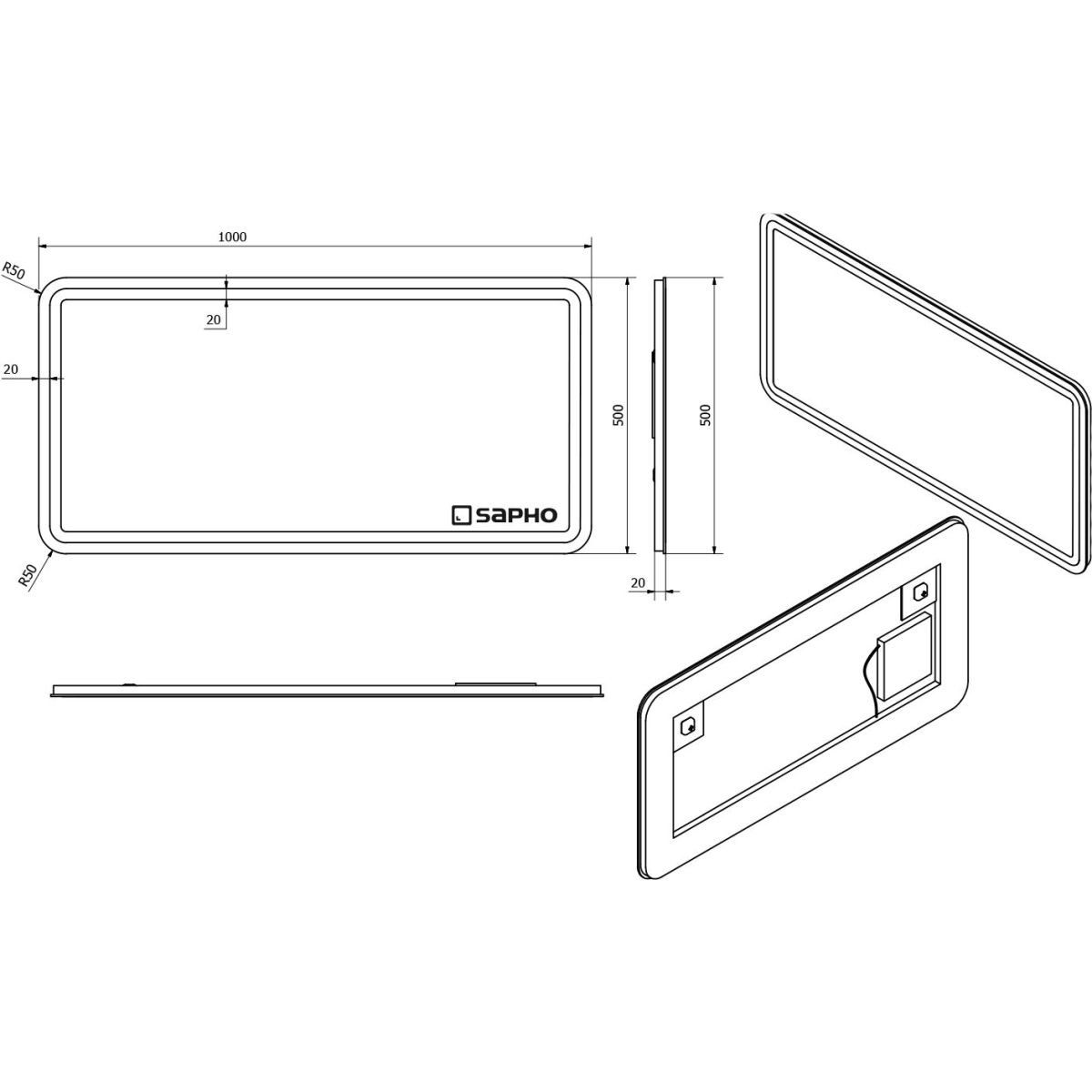 Sapho Nyx Spiegel 100x50 cm rechteckig mit Beleuchtung NY100