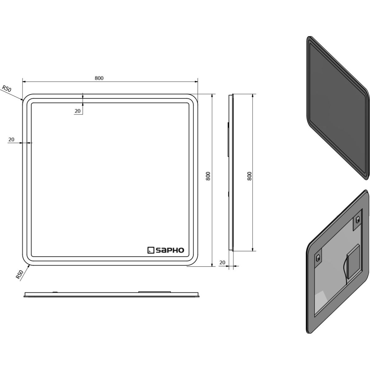 Sapho Nyx Spiegel 80x80 cm quadratisch mit Beleuchtung NY080