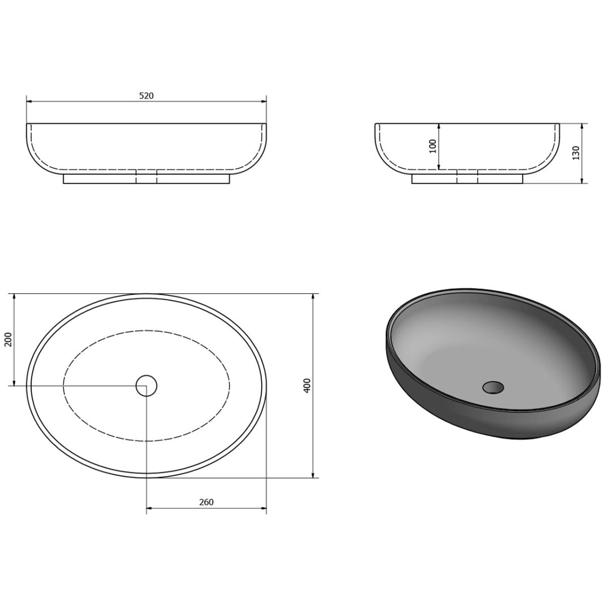Sapho Ofelie Waschbecken 52x40 cm oval Aufsatzwaschbecken weiß AR433