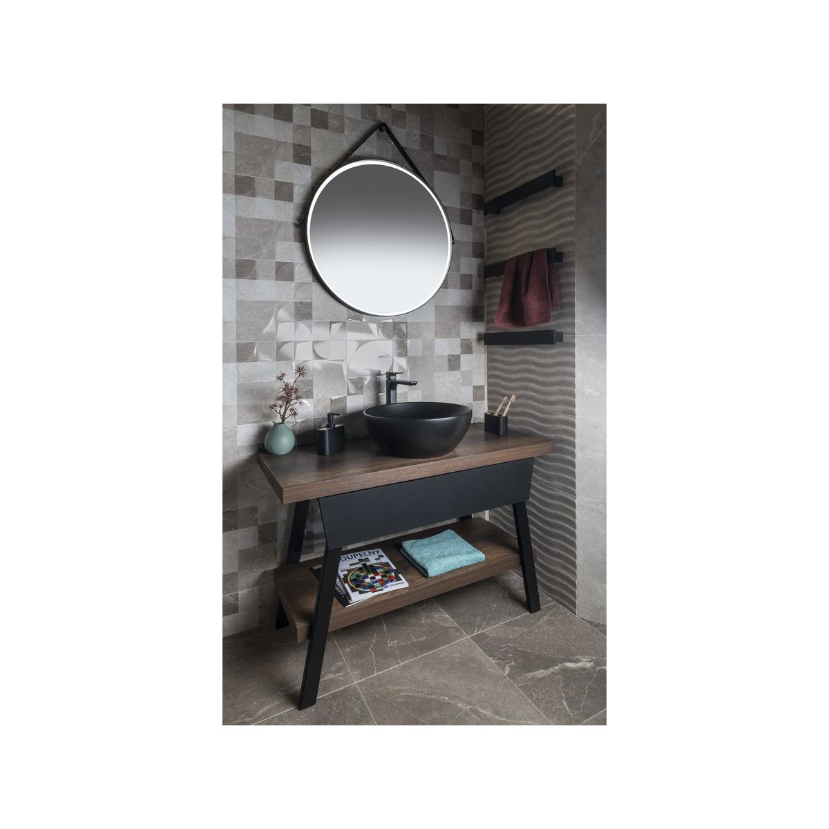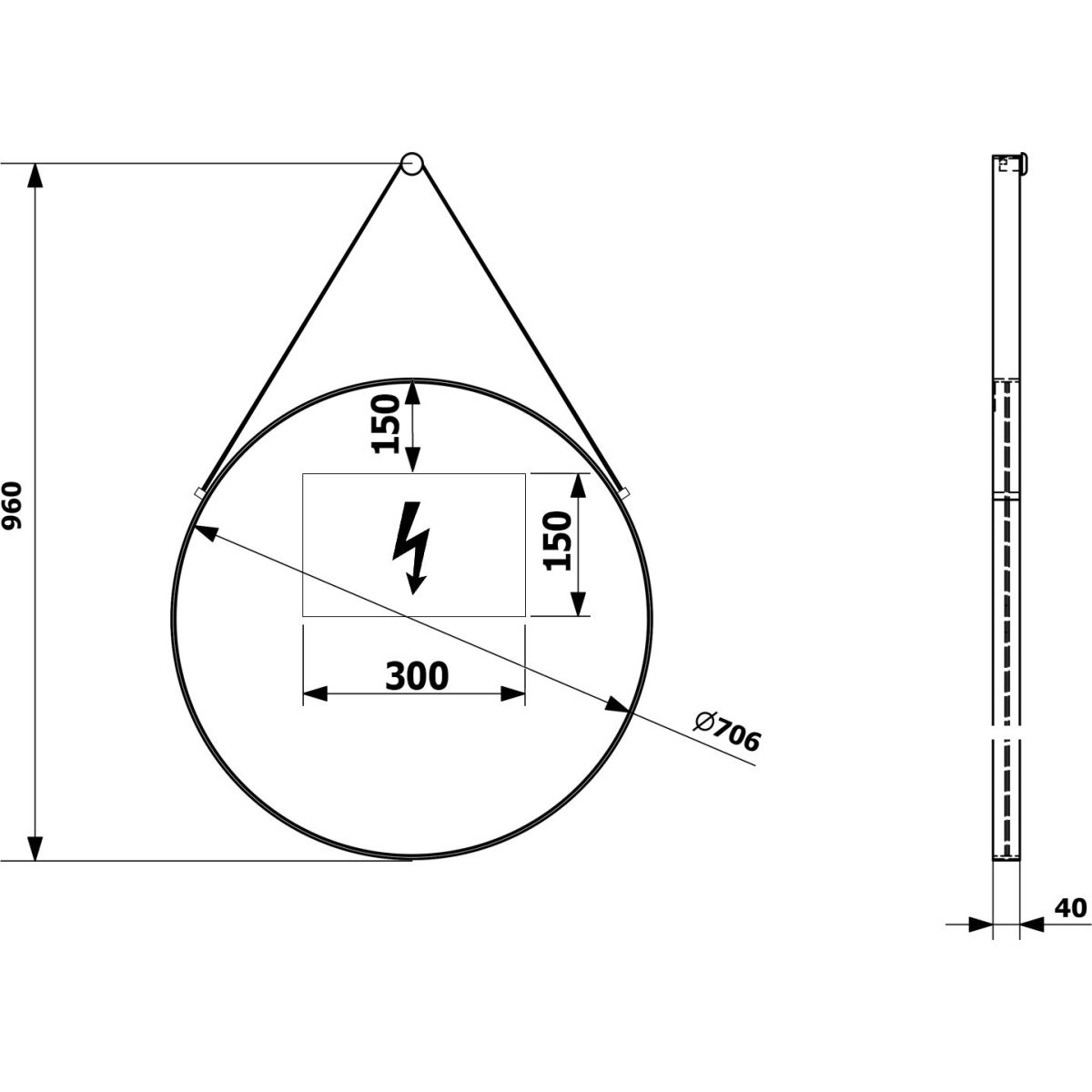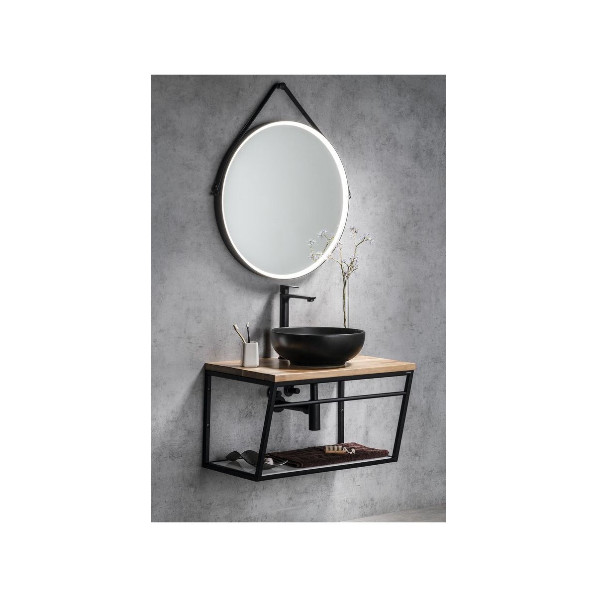 Sapho Orbiter Spiegel 70x70 cm rund mit Beleuchtung schwarz ORL070