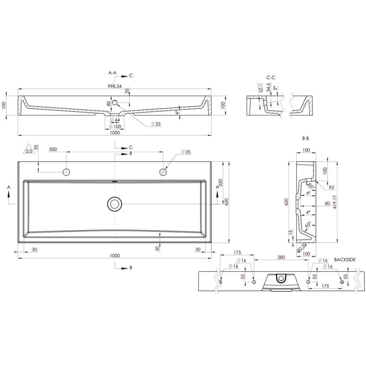 Sapho Orinoko Waschbecken 100x42 cm rechteckig Klassisch-Möbel-Doppelt weiß OR101