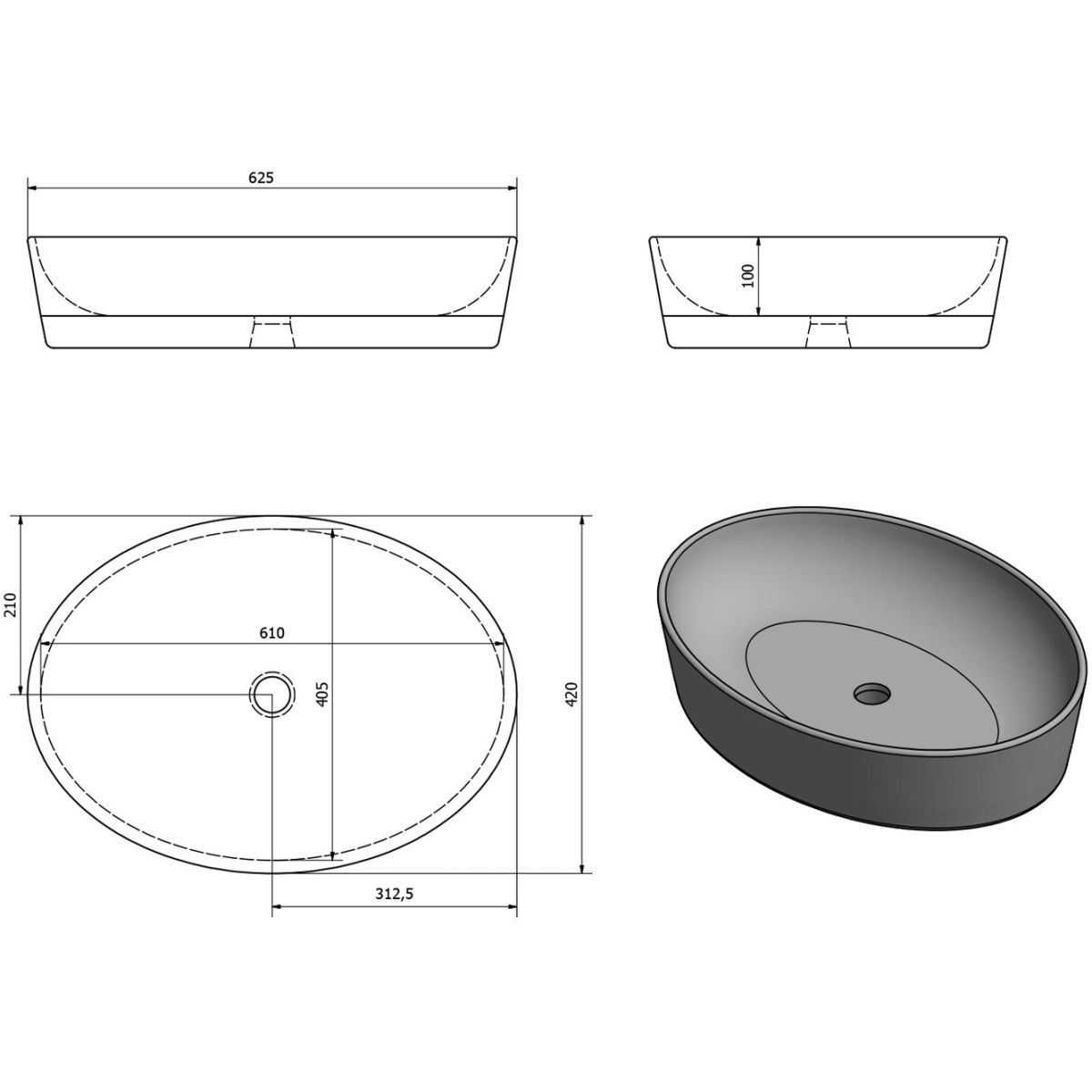 Sapho Pera Waschbecken 62.5x42 cm oval Aufsatzwaschbecken weiß AR457